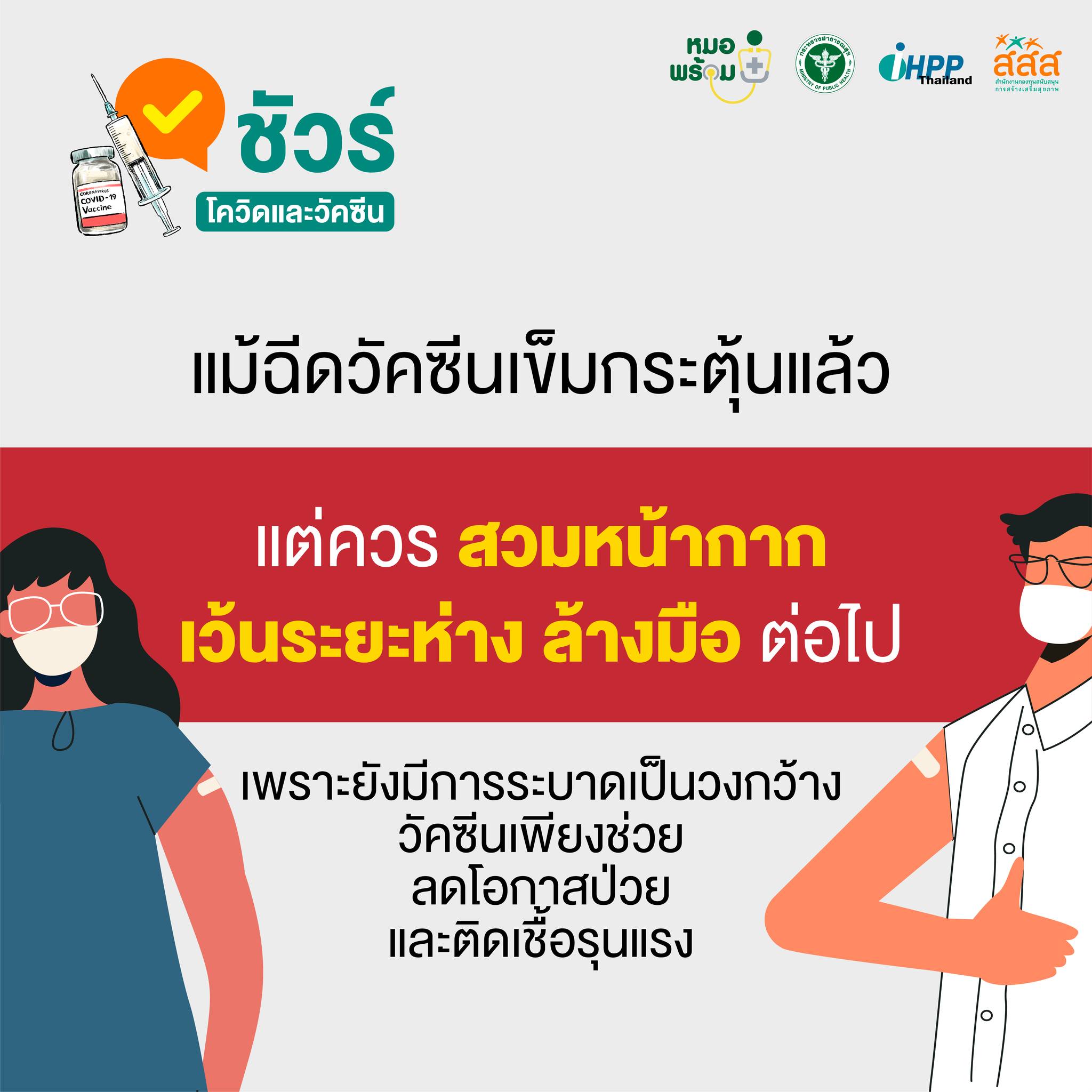 View Larger Image แม้จะฉีดวัคซีนเข็มกระตุ้นเข็ม 3 หรือเข็ม 4 แล้วก็ตาม แต่ยังควรสวมหน้ากาก เว้นระยะห่าง และล้างมือ เพราะวัคซีนช่วยลดโอกาสป่วยรุนแรงเท่านั้น แม้จะฉีดวัคซีนเข็มกระตุ้นเข็ม 3 หรือเข็ม 4 แล้วก็ตาม แต่ยังควรสวมหน้ากาก เว้นระยะห่าง และล้างมือ เพราะวัคซีนช่วยลดโอกาสป่วยรุนแรงเท่านั้น [ข้อมูลจากเพจกรมควบคุมโรค กระทรวงสาธารณสุข และเพจ Social Marketing Thaihealth by สสส.] https://www.facebook.com/100068038301804/posts/286988860245722/?d=n By Kun|2022-03-14T12:36:35+07:0014/03/2022|ข่าวสารสุขภาพ| Share This Story, Choose Your Platform! FacebookXRedditLinkedInWhatsAppTumblrPinterestVkXingEmail About the Author: Kun Related Posts สุขสันสต์วันสงกรานต์ ขอให้ปราศจากโรคภัย เงินทองไหลมาเทมา คุยเรื่องยาแบบชิวๆ ได้เกร็ดความรู้เล็กๆน้อยๆ เอาไว้ดูแลตัวเองกันค่า…ทั้งพิธีกรและแขกรับเชิญ อารมณ์ดีกันทุกคน สภาเภสัชกรรม พร้อมเครือข่ายวิชาชีพ พร้อมแถลงจุดยืนในประเด็น การมีเภสัชกรปฏิบัติการ ณ ร้านยา เต็มตามเวลาที่เปิดให้บริการ กลุ่มร้านยาฟาร์ม่าสโตร์ สนับสนุนนโยบาย #ร้านยาทุกที่ต้องมีเภสัชกร เข้าร้านยาถามหาเภสัชกร Leave A Comment ยกเลิกการตอบComment Save my name, email, and website in this browser for the next time I comment.