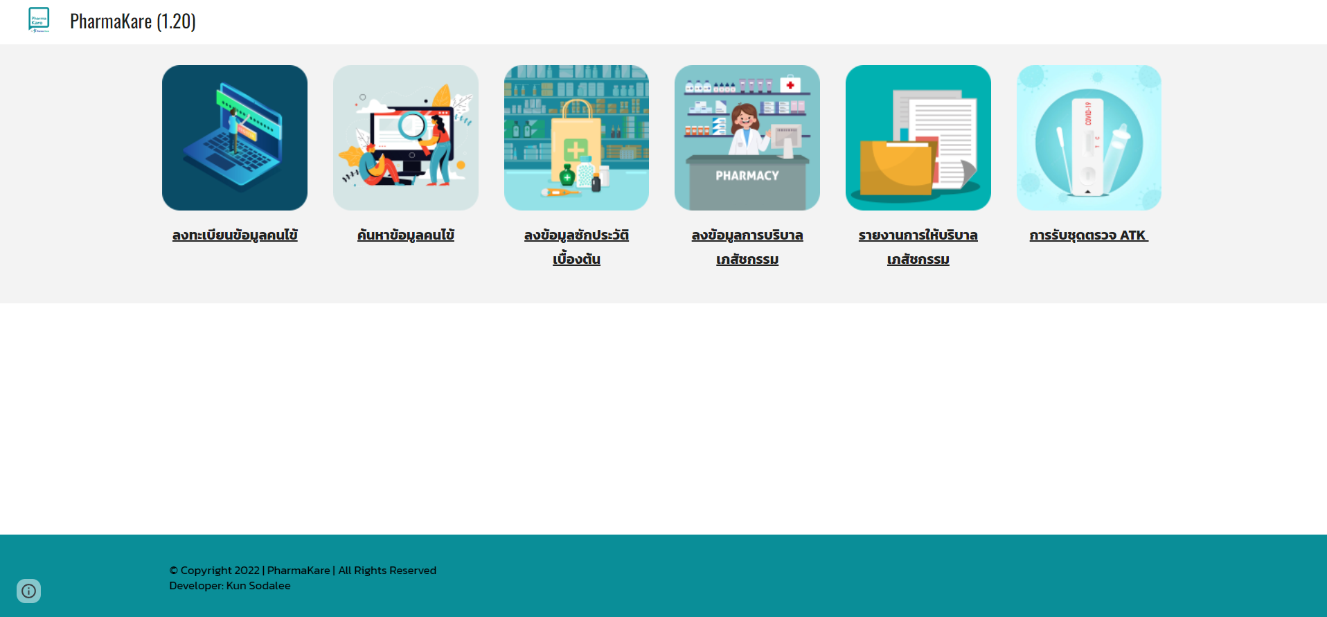 PharmaKare ver.1.20 - ออกแบบโลโก้ใหม่ - ปรับปรุง UI ใหม่ให้สวยงามขึ้น - รองรับการแสดงผลทั้งบน browser และ mobile - ระบบค้นหาข้อมูลผู้รับชุดตรวจ ATK จากทางร้าน - ระบบออกรายงานการให้บริบาลเภสัชกรรมรายครั้ง พร้อมเซฟเป็น PDF Pharmakare by Pharma Store